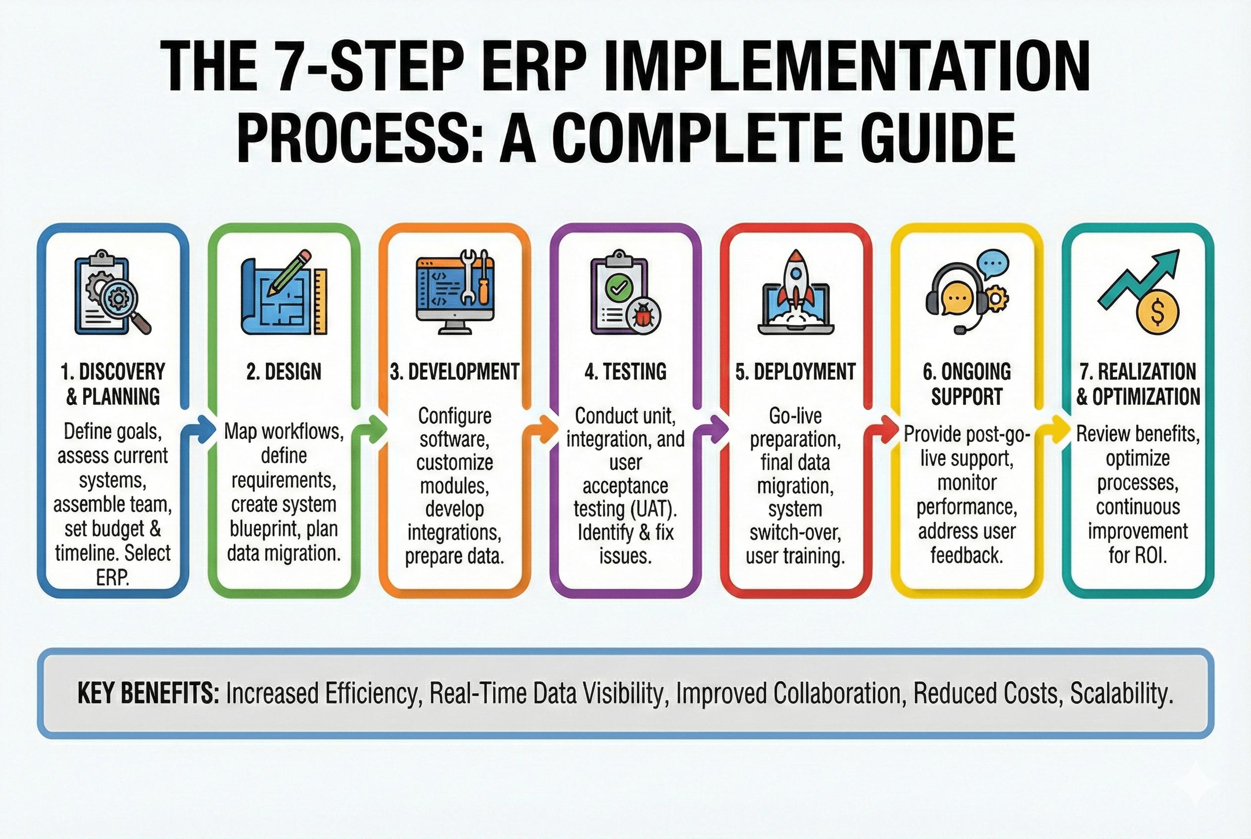 Implementing an ERP (Enterprise Resource Planning) system is a transformative process that can enhance operational efficiency, data accuracy, and decision-making. However, it requires thorough planning, execution, and follow-up to achieve the desired outcomes. This guide walks you through the essential steps of ERP implementation, outlining strategies and best practices for success.