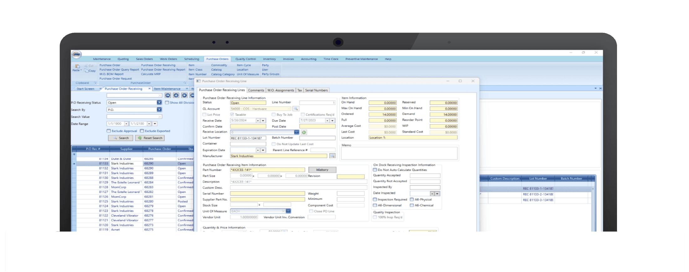 Make purchasing easy and efficient with MIE Trak Pro’s Purchasing module. Order material based on MRP forecasting, min/max reorder points, production demand, and more.
