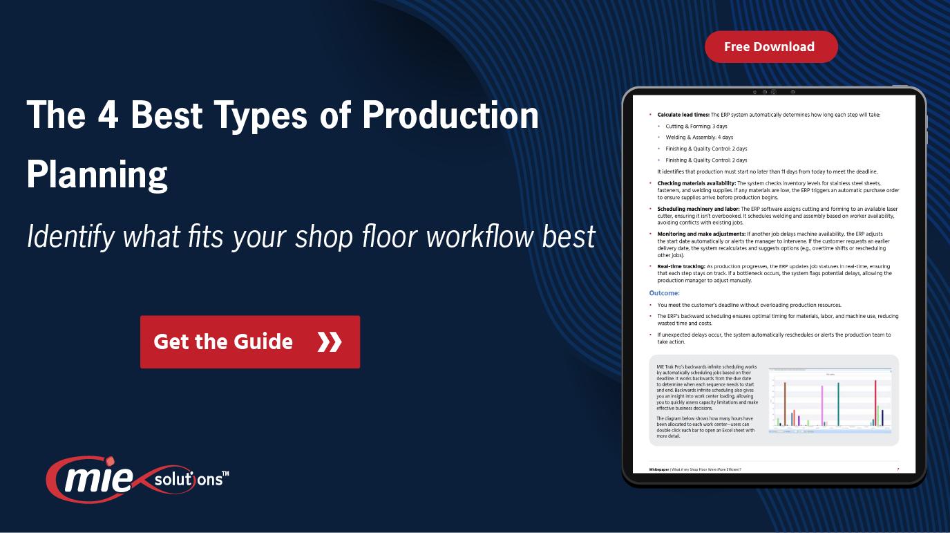 Use MIE Trak Pro’s Kiosk module to track real-time job progress and employee clock-in (without the need for paper timesheets). Shop floor employees can see their schedule, view documents, issue material to jobs, create PO requests, and more.